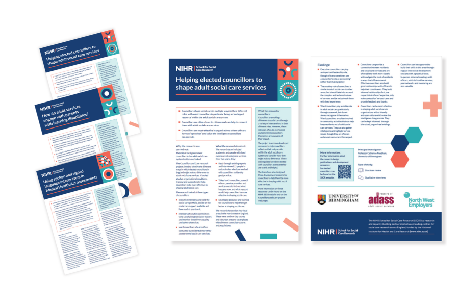 Part of a series of policy and practitioner briefs created for the NIHR School for Social Care Research, designed using the NIHR visual identity.
